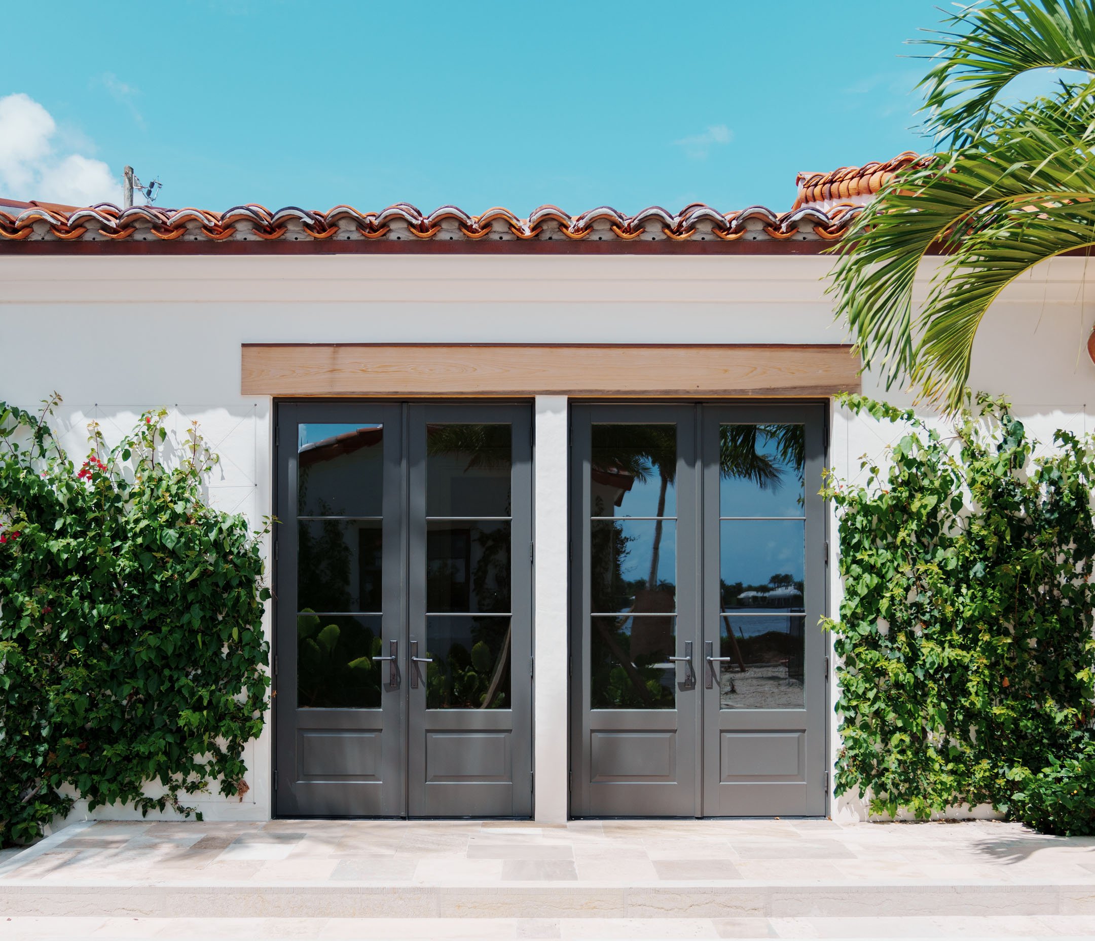 At this West Palm Beach residence, Cornerstone installed a tailored selection of Kolbe Ultra Series windows and doors, including casement, double-hung, fixed windows, and French doors. All units feature custom 2605 Kynar-finished aluminum frames, engineered for long-lasting coastal durability with a refined architectural finish. To optimize energy efficiency and storm protection, the systems were glazed with insulated laminated Low-E 270 glass.